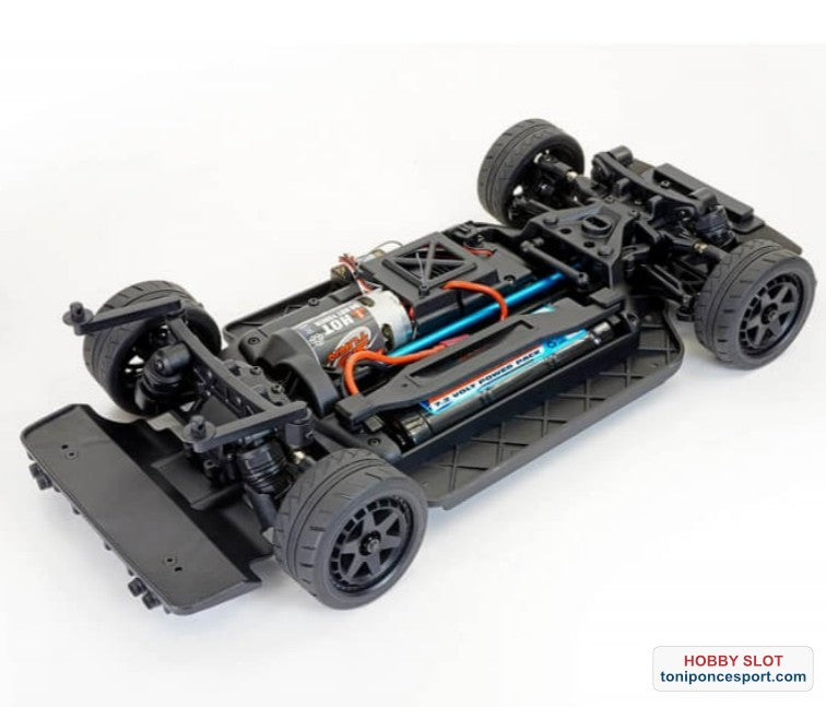Con un chasis principal ancho moldeado de inspiración aerodinámica sin cabezas de tornillos, este acabado suave, junto con un difusor trasero, proporciona estabilidad a alta velocidad. El eje accionado con diferenciales delanteros y traseros sellados con engranajes cuenta con engranajes de metal en todas partes para una máxima durabilidad. La bandeja de radio modular alberga cuidadosamente un servo de dirección con engranajes de metal Etronix de 9 kg, un ESC Hobbywing WP1040 cepillado, un motor 17T 550 cepillado, todo ello alimentado por una batería Voltz de Ni-MH de 2000 mAH, lo que lo convierte en la opción perfecta para usuarios principiantes.