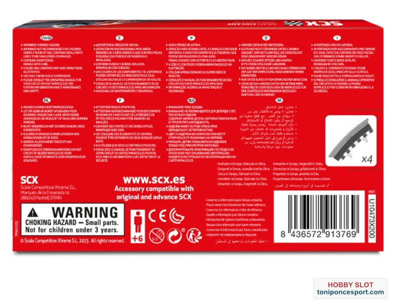 Accesorio compatible con Scalextric Original y Advance. Borde Valla Curva Exterior R3. Incluye 4 unidades.