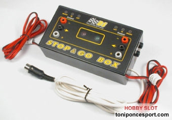 Caja Stop&Go con 2 Relée para conexión de mandos, transformadores, cuentavueltas y pista.