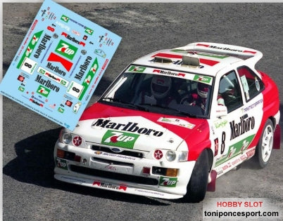 PMS-410 Calca en 1/24 de la decoración del Ford Escort RS Cosworth con el que José Mari Ponce y Gaspar León corrieron el Rally El Corte Inglés de 1994. Desgraciadamente abandonaron en el último tramo por rotura de motor cuando lideraban el rallye.