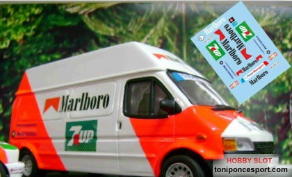 PMS332 Calca en 1/32 de la decoración del furgón de asistencia Ford Transit del equipo Ponce Motorsport de José María Ponce en las temporadas 1.994 y 1.995.