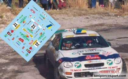 PMS318 Calca en 1/32 de la decoración de la participación en una prueba del Campeonato del Mundo de Rallyes del piloto canario José María Ponce y copilotado por Gaspar León, Rallye Montecarlo de 1.997 con el Toyota Celica GT-Four (ST205).