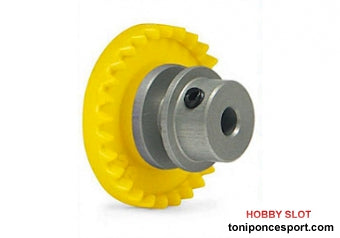 SI-GI28AL Corona 28d. motor en línea -STEP 2-. Aluminio para eje 2.38mm (3/32"). Fijada mediante tornillo allen M2