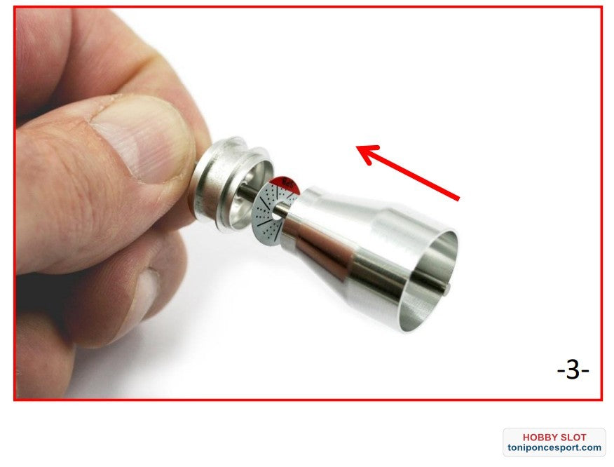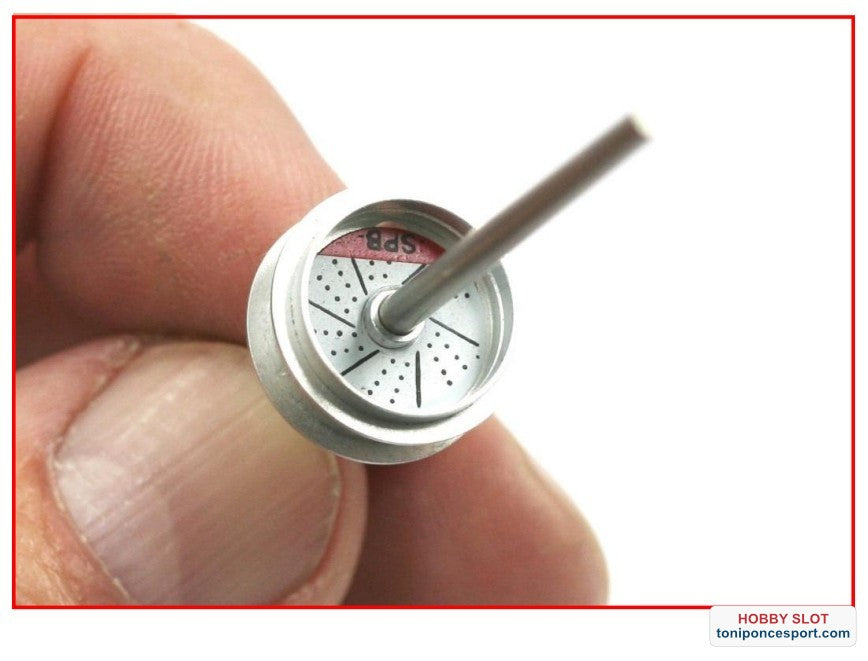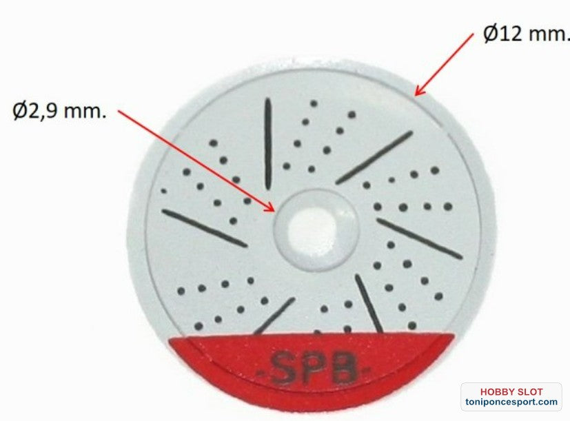 Para que este disco de freno también se pueda utilizar en las llantas de otras marcas de Slot, se ha diseñado con el agujero central de sólo 2,9 mm. de diámetro para, si fuese necesario, agrandarlo ligeramente -tal y como se muestra en el video y la foto ilustrativa-, y adaptarlo de forma precisa y ajustada a su alojamiento.