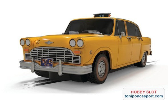Este modelo de Superslot recrea la estética del taxi con detalles impecables, desde los protectores del parachoques delantero hasta el cartel del taxi en el techo.