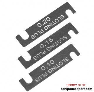 SP-143260 Acero inox. - 0,10 - 0,15 y 0,20 mm. de espesor. - Preciso y práctico jgo. de galgas para ejes de 2,38 mm. (3/32") y 3 mm. para todos aquellos aficionados que busquen la máxima precisión y fiabilidad en el ajuste de la tolerancia lateral en cualquiera de sus preparaciones. - Con el juego de galgas también se incluye un práctico tubo de plástico para protegerlas y evitar también su pérdida.