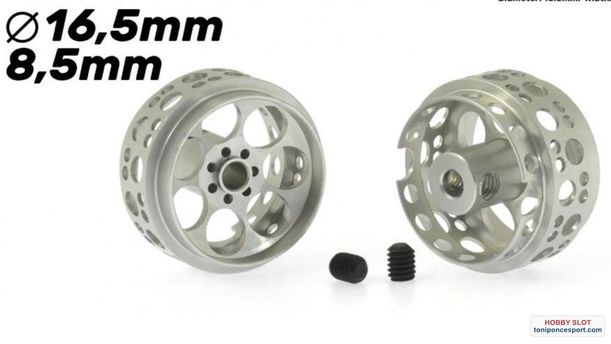 Llanta aluminio 16.5x8.5mm. Monza-2 para Eje 2,38mm con Tornillo M2.5 Peso 0,80 gr.