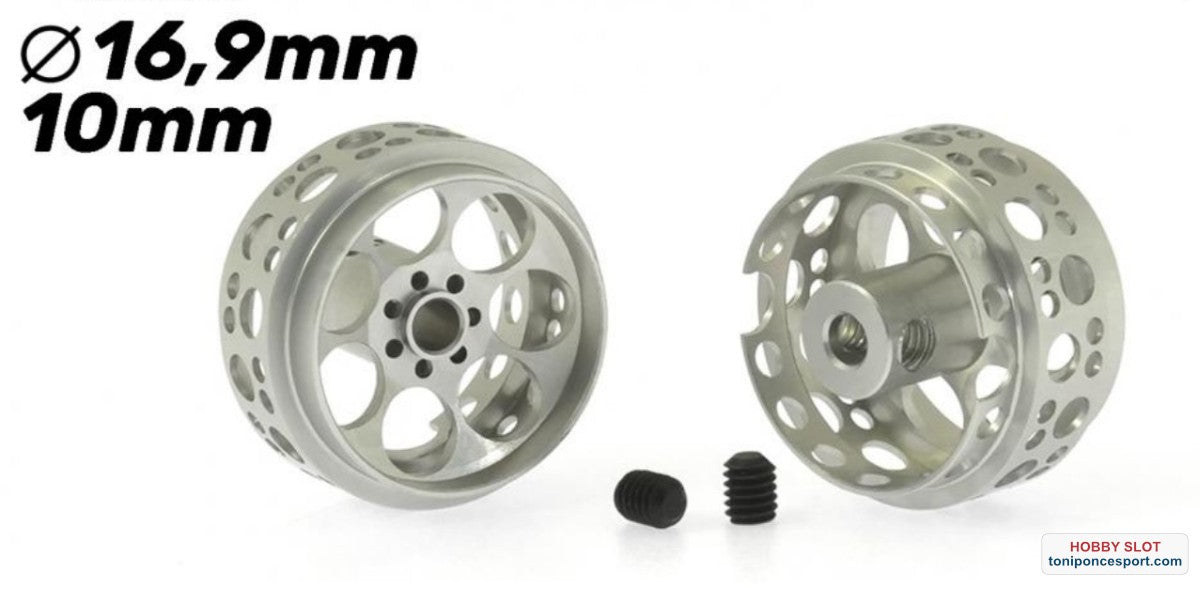 Llanta Aluminio 16.9x10mm. Monza-2 para Ejes 2,38mm con tornillo M2.5 Peso 0,90gr