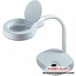 Lupa Sobremesa con Fluorescente. Tamaño de la lente: 3,5". Lente bifocal: 3 y 8 dioptrías. Brazo flexible.