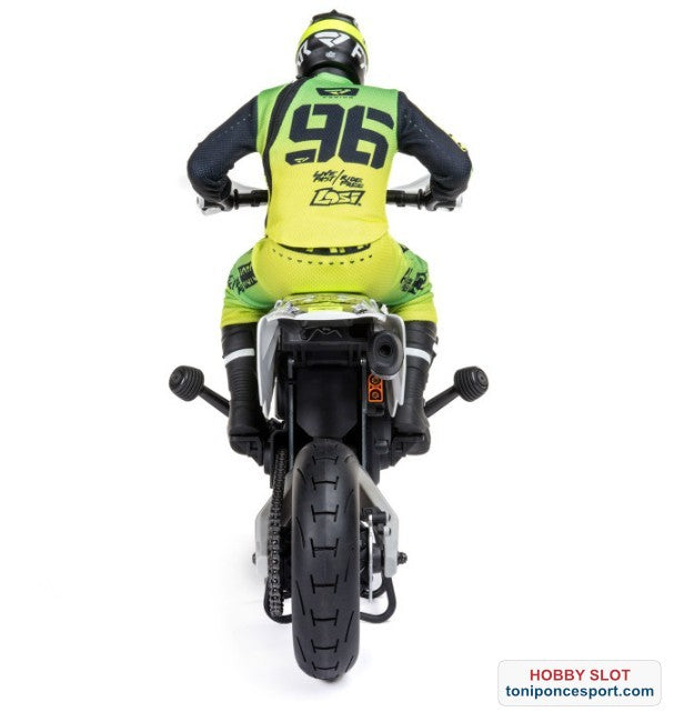 Ambas tecnologías, electrónica y mecánica, son la razón por la que la plataforma Promoto rinde mejor a altas y bajas velocidades que cualquier otra motocicleta RC anterior. Ahora, con la Losi Promoto-SM, existe una moto RC que realmente funciona, ¡con prestaciones y estilo listos para el asfalto!