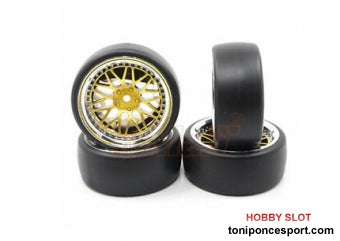 Ruedas Drift - Spec D LS Offset +6 Gold Silver Wheels w/Tires 4 1/10 Drift