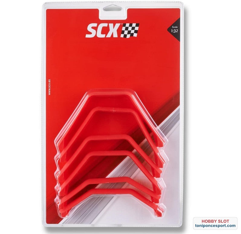 "Accesorio compatible con Scalextric Original y Advance. Este accesorio incluye 6 soportes de 3 tamaños distintos para facilitar la elevación del puente de forma progresiva.