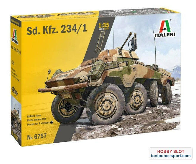 Los vehículos blindados alemanes Schwerer Panzerspähwagen Sd.Kfz. 234 se fabricaron durante la fase final de la Segunda Guerra Mundial. Se distinguieron por su meticuloso diseño y fabricación, combinando movilidad, flexibilidad operativa y capacidad ofensiva. Representaban una excelente combinación de velocidad en todo tipo de terreno, protección y potencia de fuego, sintetizando la experiencia operativa adquirida por la Wehrmacht durante los primeros años del conflicto. Podían alcanzar una velocidad máxima de 85 km/h en carretera. Entre las diferentes variantes producidas, el Sd.Kfz. 234/1 sirvió frecuentemente como vehículo de mando. También utilizado en misiones de reconocimiento avanzado, estaba equipado con un cañón KwK 30 de 20 mm montado en una torreta abierta, capaz de proporcionar fuego de apoyo a la infantería y atacar objetivos con blindaje ligero.