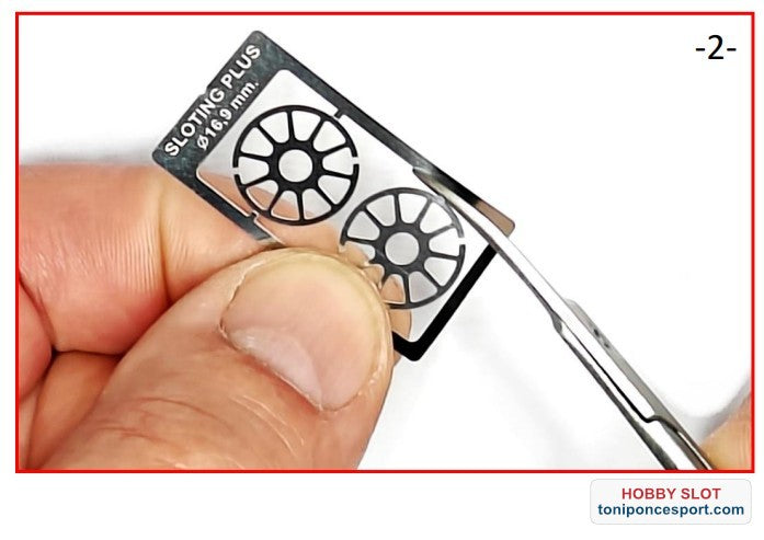 coincidir con la medida de la llanta), recorte con unas tijeras tal y como se muestra en la imagen -2-.