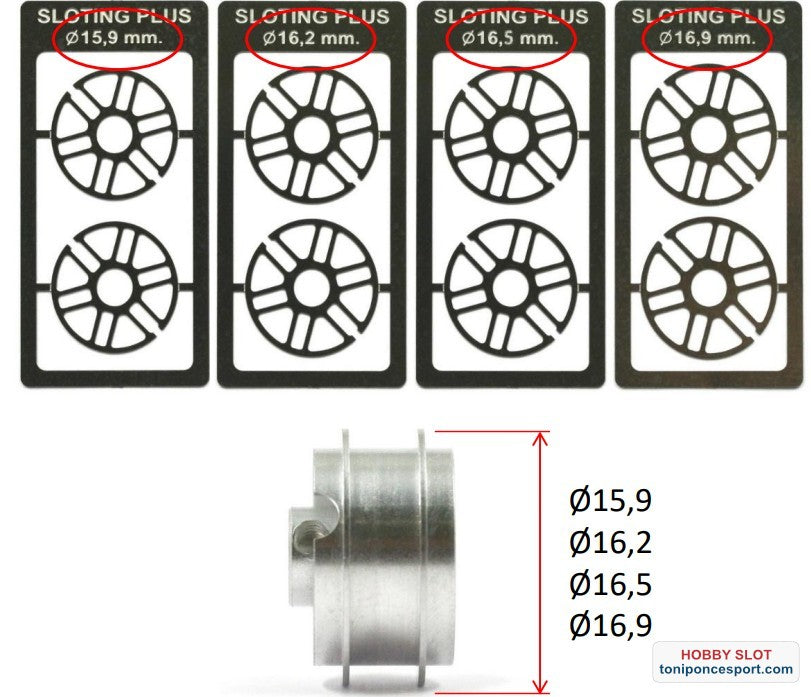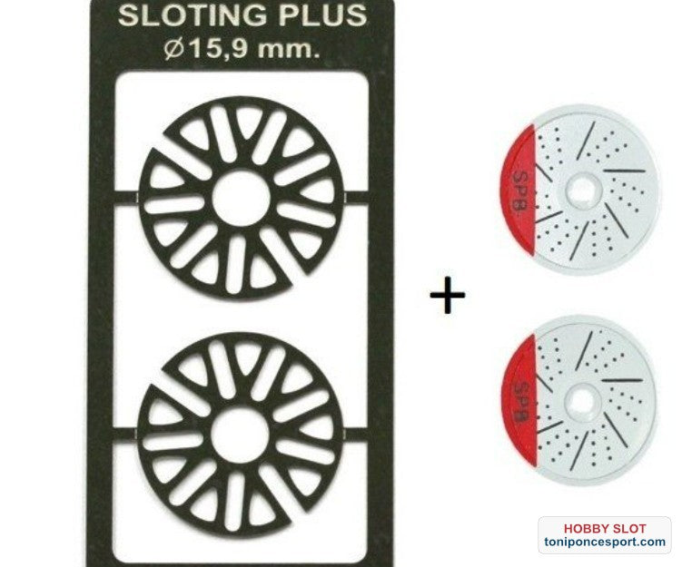 Para llanta UFO -UNIVERSAL- de Ø15,9 mm - 0,10 mm. de espesor - 0,052 gr./u. - bolsa con 2 u. + 2 discos de freno.