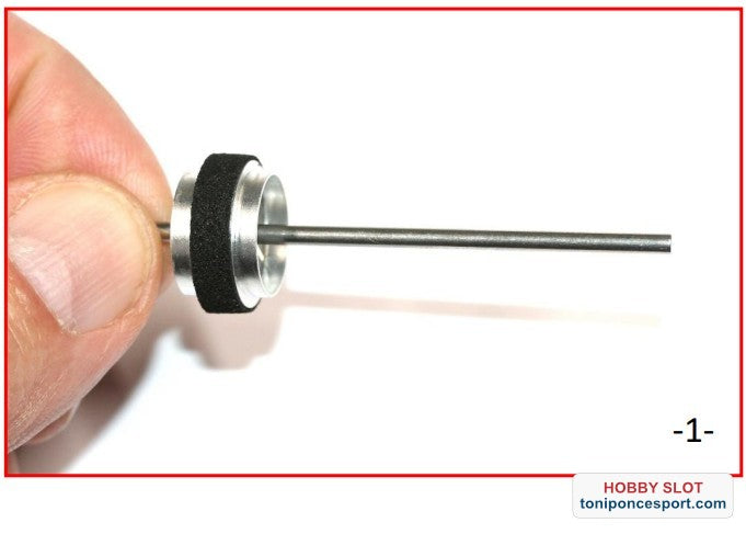 En primer lugar, atornille la llanta a un eje como en la imagen -1-.