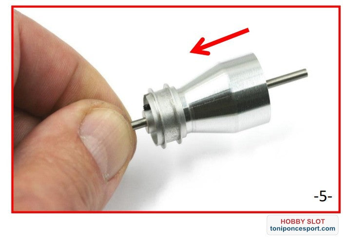 El siguiente paso es colocar el eje en el interior de cono de Aluminio tal y como se muestra en la imagen -4-.
