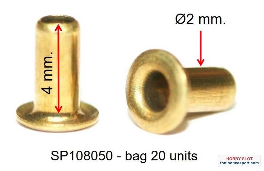SP-108050 Latón - 1,9 mm. de diámetro x 4,5 mm. de longitud total - bolsa con 20 unidades.