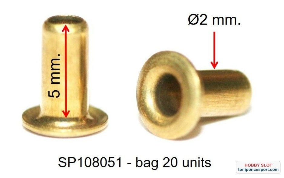 SP-108051 Latón - 2 mm. de diámetro x 5,5 mm. de longitud total - bolsa con 20 unidades.